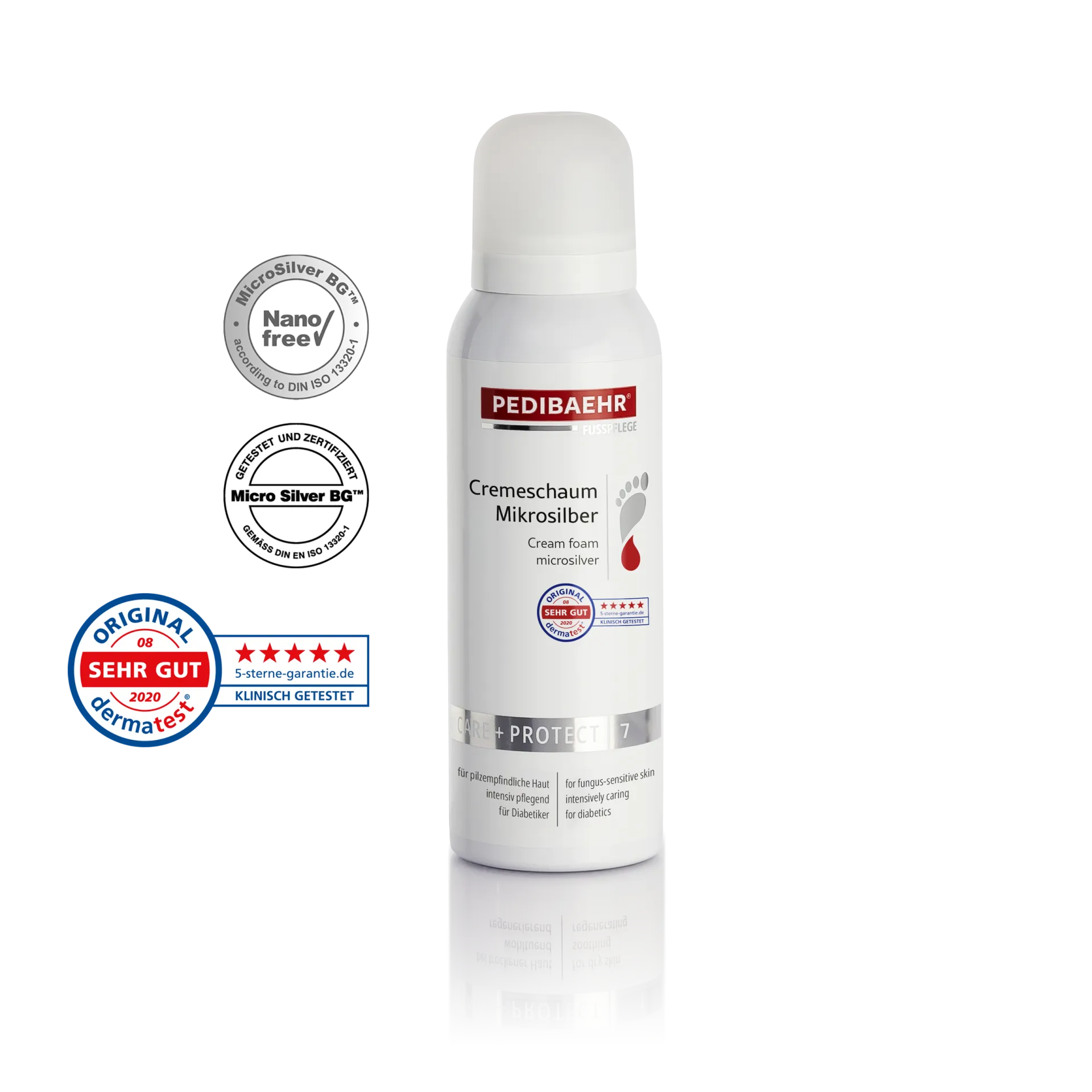 Cremeschaum Mikrosilber ist eine innovative Pflegecreme mit antibakterieller Mikrosilber-Technologie für die professionelle Anwendung in Podologie-Praxen, Fußpflegeeinrichtungen und medizinischen Einrichtungen. Der Schaum bietet nachhaltigen Schutz vor Bakterien und Pilzen und pflegt die Haut intensiv.