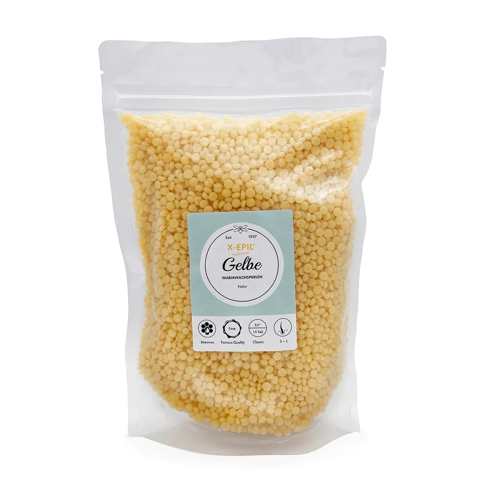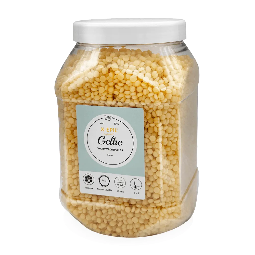 Hochwertige Warmwachs-Perlen in Gelb für die professionelle Haarentfernung in Kosmetikstudio, Spa und Praxis. Diese Wachsperlen überzeugen durch einfache Handhabung, optimale Schmelzeigenschaften und hautschonende Anwendung.