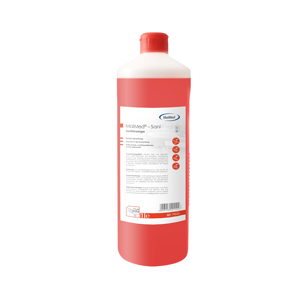 Der Sanitärreiniger kann je nach Verschmutzungsgrad individuell angemischt werden. Bei starken Verschmutzungen unverdünnt auftragen und 5 Minuten einwirken