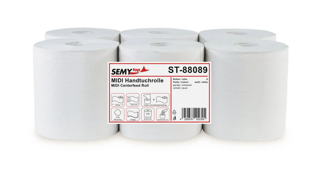 Handtuchrolle MIDI 20 cm, 2-lagig, recycling weiß, Ø 19 cm, 6 Rollen